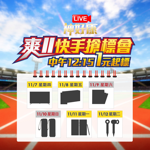 讓大家爽爽賺、賺爽爽的雙11就是要回饋給大家!「神腦生活」FB粉絲團在11/1-11/12每天中午12:15,推出「LIVE神好康」直播連線一元搶標會,對,你沒看錯就是1元!每天搶標商品都可說是2019的爆款商品,可見腦闆誠意十足豁出去的決心XD