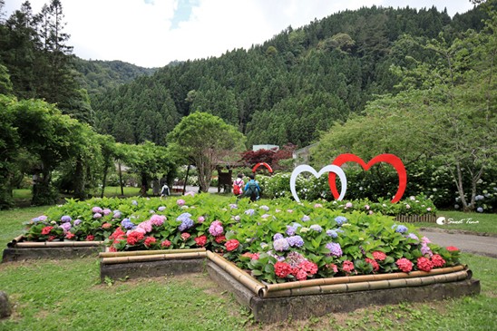 戶外的藥用植物園是杉林溪中最繽紛的展花區,這裡的繡球花顏色相當豔麗,絕對能拍出多張美照。