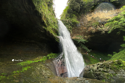 瀑布邊的天然岩洞,稱為「松瀧岩」,瀑布、岩洞、河溝及嶙峋巨石,都是溪水經過幾萬年的向源侵蝕、切割、滲透等作用形成。