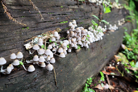 大雨過後木頭上結滿了小菇菇,感覺增添了童話感。