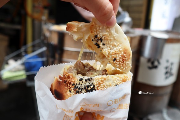 一口咬下胡椒和牛肉的香氣交錯著,熱呼呼的吃好過癮啊。