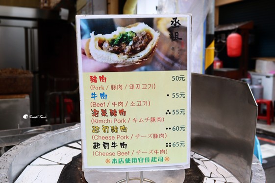 丞祖胡椒餅的口味有 : 豬肉、牛肉、泡菜豬肉、起司豬肉、起司牛肉,每一款都有喜好者,通常開爐後沒多久就被掃光啦。
