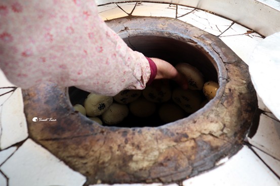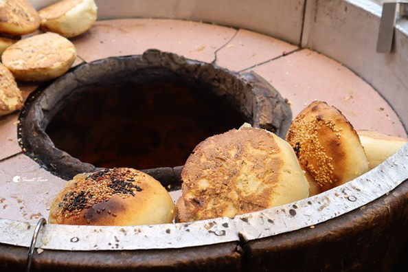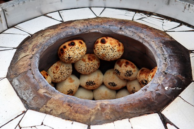 這個烤爐超高溫的,很佩服店家徒手將餅放入。