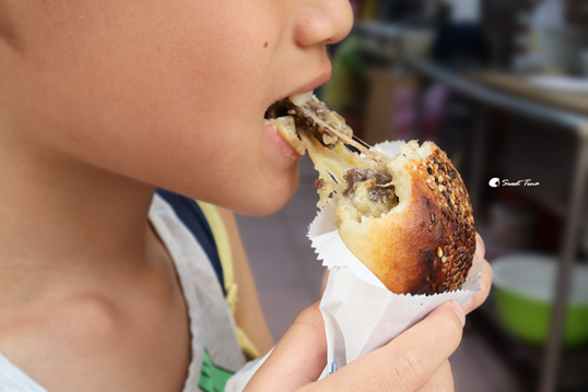 起司牛肉 - 內餡有牛五花、洋蔥、安佳起司,因胡椒的辣香感較為明顯,所以瑋兒較不敢吃,不過我可是超愛的,牛肉和起司的絕妙搭配是誰都難抗拒,這個口味也是我最愛的一款呢。