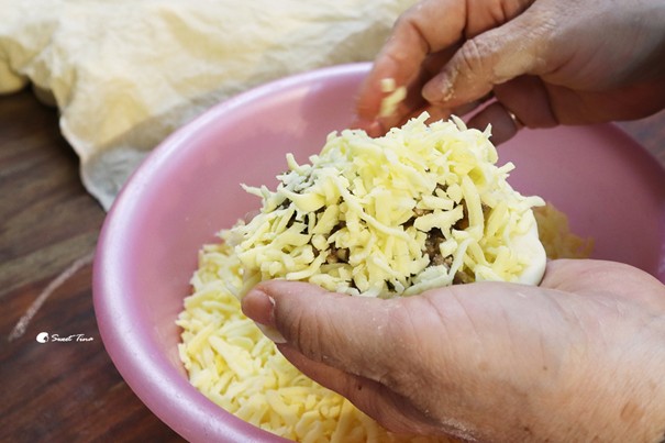 而起司也是選用高品質的安佳起司,一樣不手軟的塞好塞滿,光看就讓我食指大動,好期待烤後的胡椒餅啊。