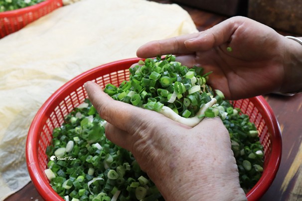 這邊的青蔥採用高品質的三星蔥,不計成本的大把大把塞入餡料中,光看就覺得過癮。