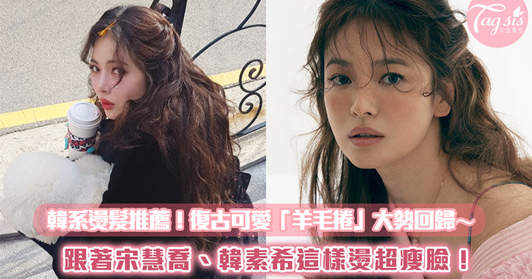 宋慧喬在最近拍攝的畫報中也燙上了羊毛卷!這款羊毛卷的捲度比較大一點,空氣感也更重,所以對於方臉人、臉肉肉的人來說修飾效果很好~加上宋慧喬搭配了些微的胎毛瀏海,不僅可以修飾臉部稜角分明的地方,整體氣質看起來也更溫柔!