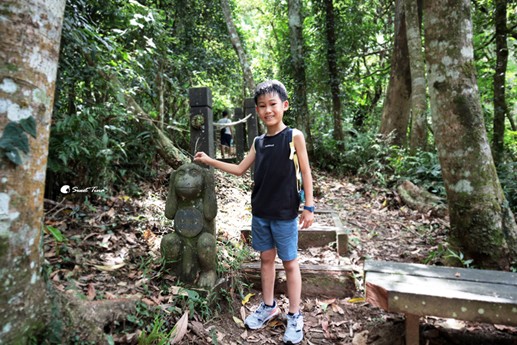 猴洞步道一路上都有可愛的猴子石雕為我們指引,可以清楚的知道位於幾公尺處。