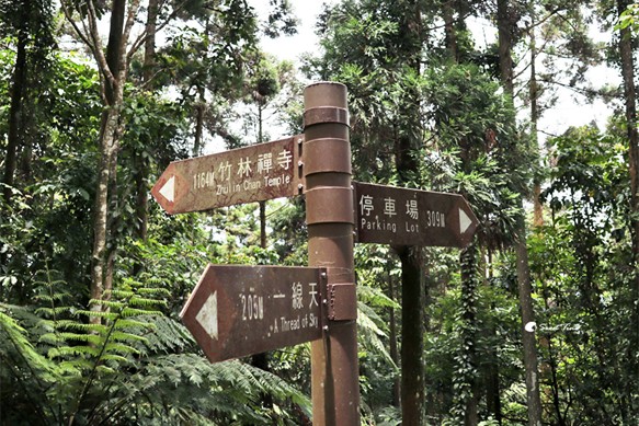 猴洞步道的出口處可以連結竹林禪寺,而我們是通往停車場處。