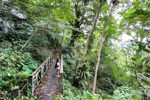 夏季走在步道中可以看見到處飛舞的大蝴蝶,一路上綠蔭圍繞,真的很像走在祕境之中,舒服極了。