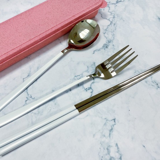像這款【Caldo卡朵生活】質感隨身不鏽鋼環保餐具組(白/黑),筷子+湯匙+叉子三件組,完美符合日常三餐使用,麵飯、水果都沒問題。基本黑白兩色設計,經典耐看,永不退流行,低調又具設計感的外型,和許多餐具搭配拍照都適合唷!而它的扁身設計,輕盈好握取,方形筷更不易滾動,簡約大氣,質感更加分。材質則是精選的304不鏽鋼,吃下每口食物都安心。還有配套的收納盒,內附扣環,方便固定餐具不亂跑,外食族常備一組在包包真是再適合也不過了。