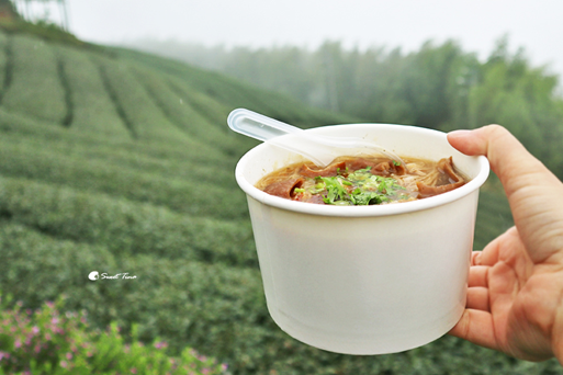 中午下了場雨,天氣也驟降不少,這時最適合來碗熱呼呼的麵線了,在茶園旁吃麵線格外的享受呢。