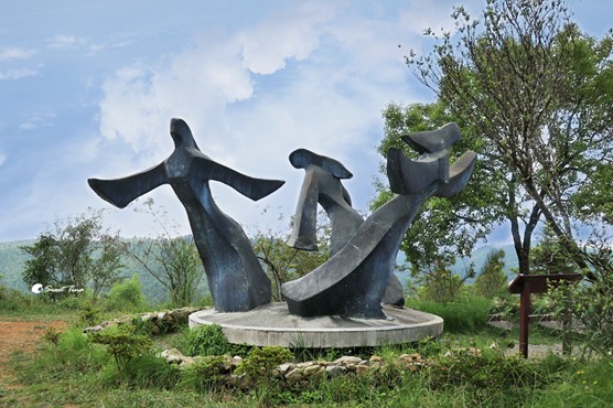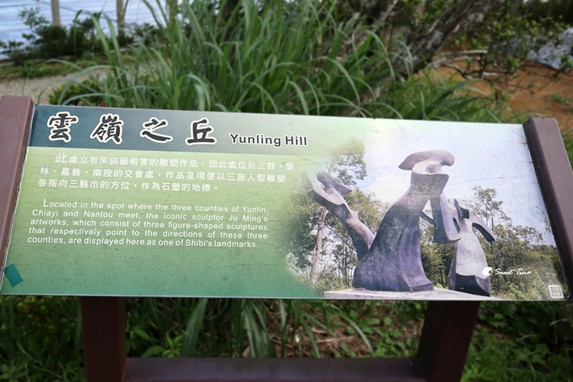 平台上為朱銘藝術家的人型雕塑作品,所指的方向分別是雲嘉南三縣的地理位置,作為石壁的地標。