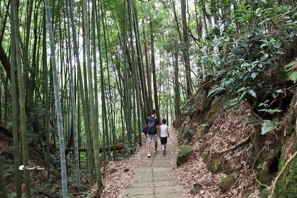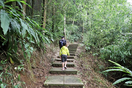 杉林步道全長約700公尺,主要以石板建置而成,高低坡度落差不大,是條適合全家同行的輕鬆步道。