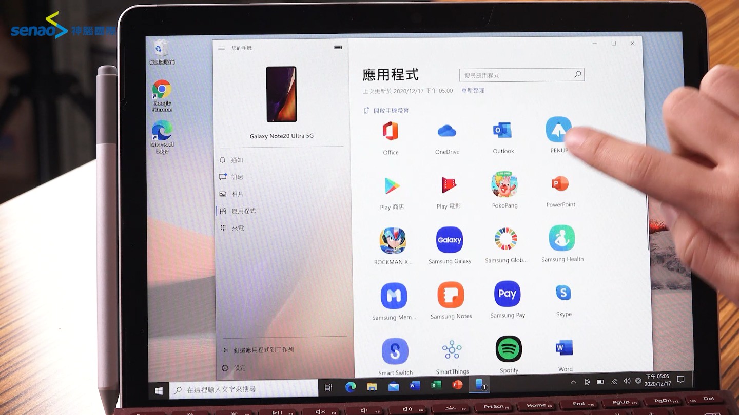 而且工作時偶爾會想要打混摸魚一下,但是拿出手機偷閒又怕被人發現,這時就可以點選「您的手機」app 上的「應用程式」標籤,你的 Galaxy 手機上大多數的 app 就能在 Windows 電腦操作囉。想要偷偷玩個手遊或看看 YouTube 也沒問題,如果電腦有觸控螢幕,還能直接觸控操作。