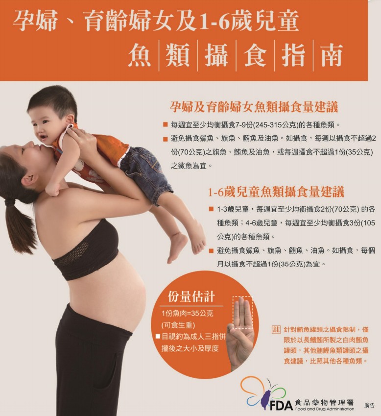 食藥署的魚類攝食飲食指南中提到,孕婦及6歲以下幼童應避免攝取大型魚類如鯊魚、旗魚、鮪魚及油魚,是為了避免魚肉內可能有累積的甲基汞因而存在於幼兒腦部中,會容易影響幼兒的智力發展及胎兒的腦部發育,即使真的要吃,每週也不應吃超過35克(約成人三指併攏後的大小及厚度)。