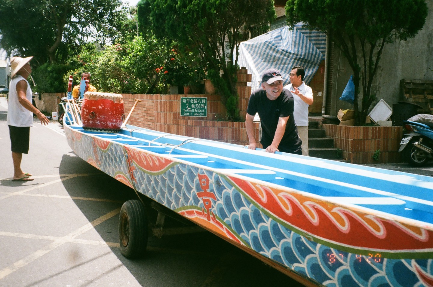主角阿公是在地的社子島人,大半輩子在社子島上奮鬥,阿公說:「能在完全沒有開發的社子島上還能事業有成,更要感謝社子島上的神明保佑。」看得出居民對神明的敬畏,也因島上有著相同的信仰,才得以讓島上傳統慶典傳承下去。端午節是社子島居民、也是阿公最投入的傳統慶典活動,當地保留著許多端午傳統,像是推龍船、祭水神、龍舟賽、辦流水席等,阿公為了回饋鄉親,捐贈一對龍船,推龍船儀式在端午節龍舟競渡的前兩天,將放了一年的龍船推下水,讓龍船密合,才不易滲水;還有男生上龍舟會帶來一整年好運、女生不能上龍舟、煮艾草水擦澡能避邪等民間習俗。