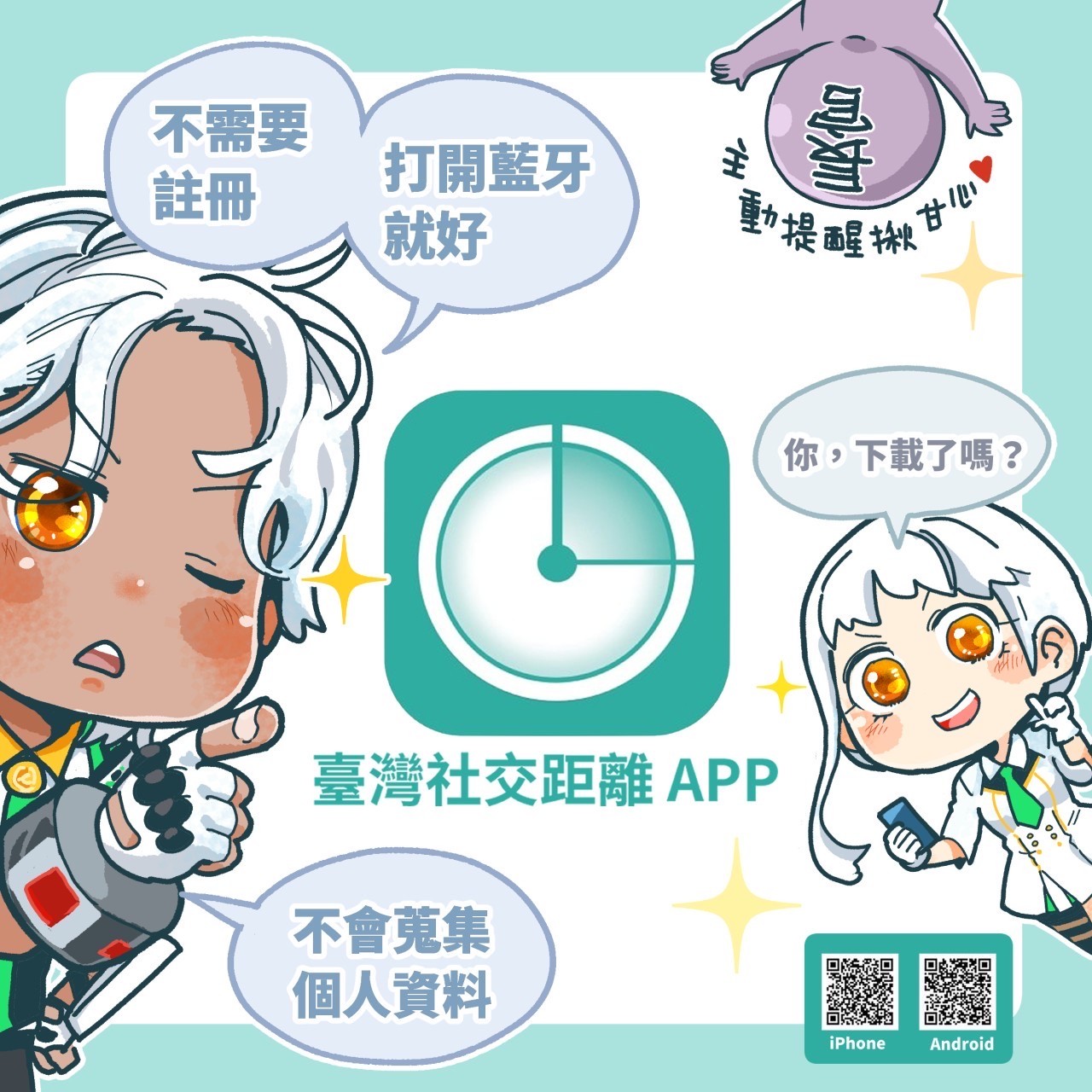 如果這期間有需要出門,除了使用記名制電子票證之外,也別忘了安裝「臺灣社交距離」app。這款 app 是台灣人工智慧實驗室與衛福部疾管署合作開發的 app,不需要註冊資料也不會有任何資料上傳,僅透過手機間的「藍牙」訊號強弱來計算每一位使用者之間的距離。