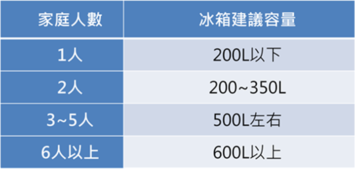 冰箱太小會不夠冰,冰得太滿也會影響冰箱保鮮的效率,一般來說建議冰箱不要超過「8分滿」。但若冰箱太大,除了可能會佔據家中空間,更重要的是「耗電」,讓你不知不覺增加電費支出。冰箱容量除了先確定家中擺放位置與空間大小,還要依據兩個面向來考量: