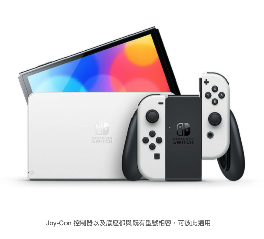 新舊型 Nintendo Switch 主機包含 Joy-Con 控制器與底座在內的既有周邊配件都可以彼此通用。