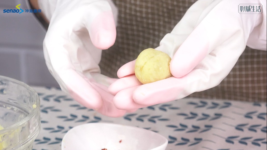 ➡️ STEP 3. 將餡料分成一顆顆球狀備用。