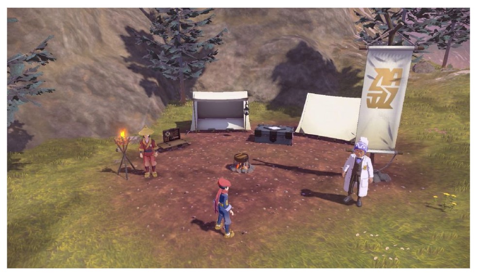 從祝慶村出發前往各區域後,會先抵達被稱為「基地營」的據點,再由此展開調查。基地營不僅是調查時的起點,在調查途中也能回到這裡幫同行的寶可夢回復體力,或利用工藝製作台進行「工藝製作」來自製道具,是個能夠讓主角整裝再發的地方。