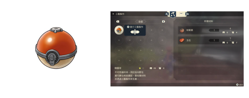 親手做出在捕捉寶可夢時使用的「球」,以及各式各樣有助於調查的道具吧。例如使用「球果果」、「玉石」進行工藝製作,就能夠做出「精靈球」。