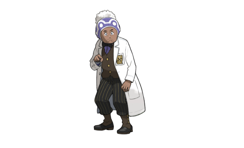 帶著將會成為主角最初搭檔的「木木梟」、「火球鼠」、「水水獺」的寶可夢博士。也是主角在洗翠地區第一個遇見的人。他似乎是來自別的地區,說話時有著獨特的語氣。目前正以銀河隊調查組成員的身分在研究寶可夢的生態,希望能夠完成「寶可夢圖鑑」。