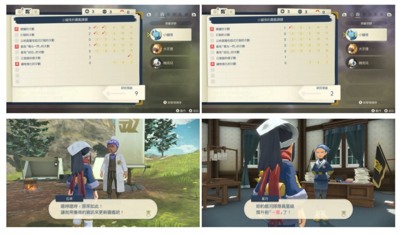 在以往的《寶可夢》系列作品中,玩家只需捕捉一次寶可夢,就能將這種寶可夢的所有資訊記錄到圖鑑裡。但本作的寶可夢則是有各自的「研究等級」,讓玩家能更深入地體驗研究寶可夢的樂趣。研究等級會隨著玩家觀察寶可夢的生態或讓寶可夢進化而提升,圖鑑中記載的內容也會越來越充實。而且隨著寶可夢圖鑑的完成度提升,代表主角對銀河隊貢獻度的「隊員星級」也會提升。此時,能夠前去調查的地區也會增加。以完成寶可夢圖鑑為目標,前往未知的地方吧!