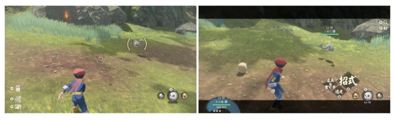 在本作中,只要將裝有同行寶可夢的精靈球投到野生寶可夢附近,同行寶可夢就會立刻跑出來無縫地開始對戰。