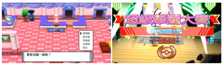 華麗大賽也將亮麗升級,以「超級華麗大賽」的形式嶄新登場。「超級華麗大賽」是神奧地區的當紅表演,由 4 名表演者和寶可夢們合力演出。你將換上自己喜歡的服裝站上舞台,寶可夢也會隨著節奏跳舞,帶來的體驗和以實力分勝負的寶可夢對戰大不相同。