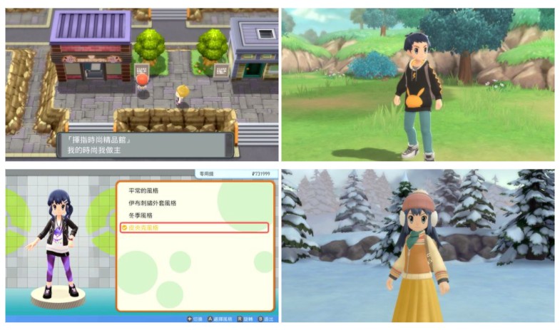 在帷幕市的「揮指時尚精品館」能購買服裝,以及為主角換裝。店裡提供的服裝上下身成套搭配,有的以寶可夢為主題,有的會改變主角的髮型,風格五花八門。挑選喜歡的服裝來裝扮自己,開心地享受神奧地區的冒險吧!