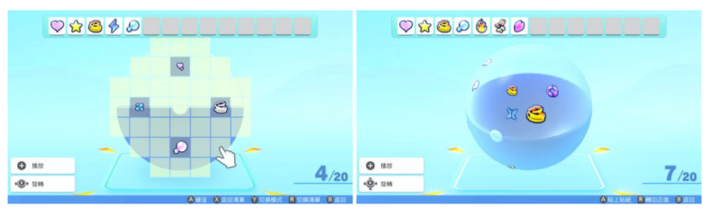 球殼裝飾提供如同《寶可夢 鑽石/珍珠》時,能輕鬆享受裝飾樂趣的 2D 模式,以及能在設計上更加講究的 3D 模式。