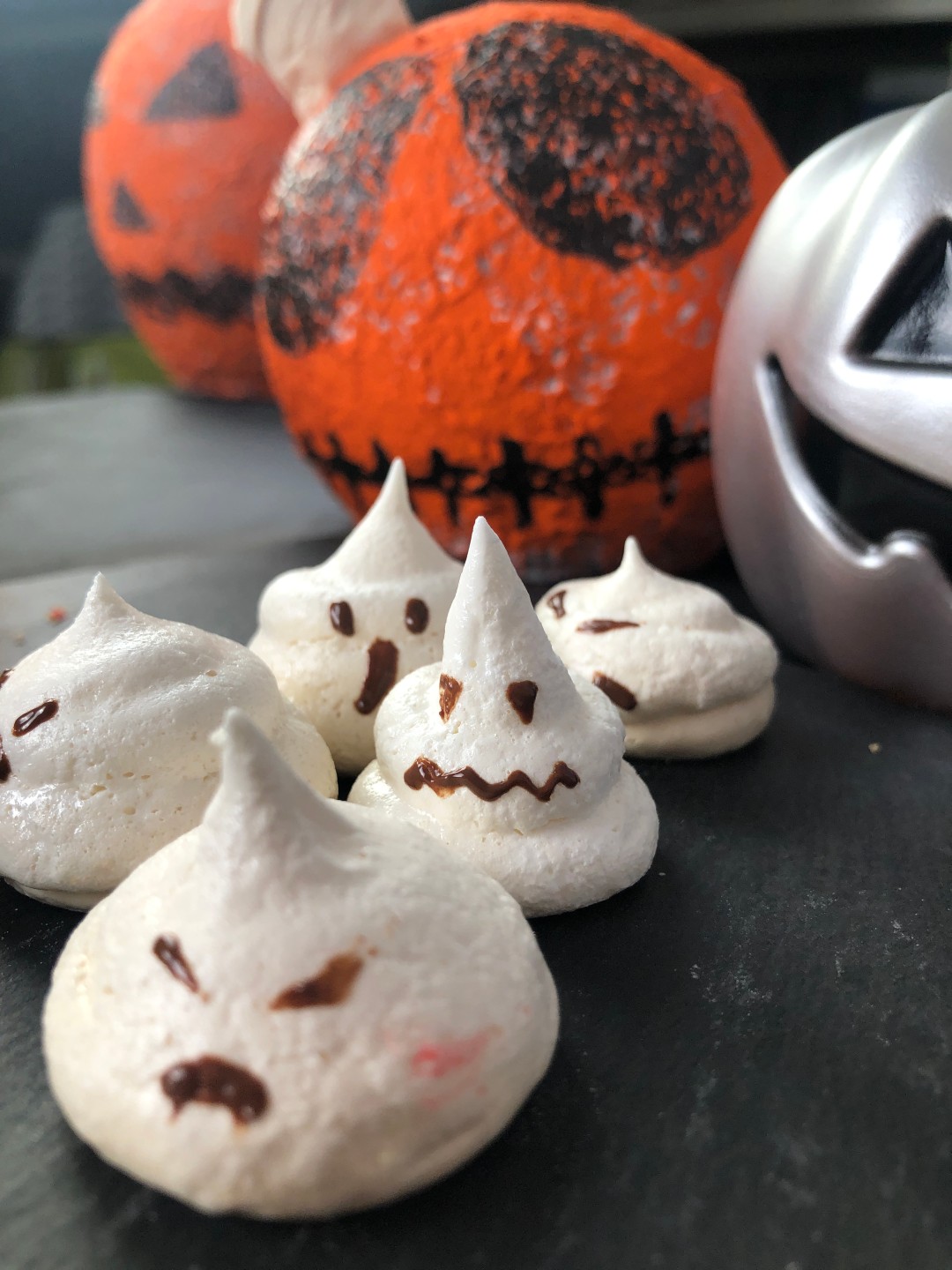 ➡️ STEP 5. 用融化的巧克力在烤好的馬林糖上畫出鬼臉