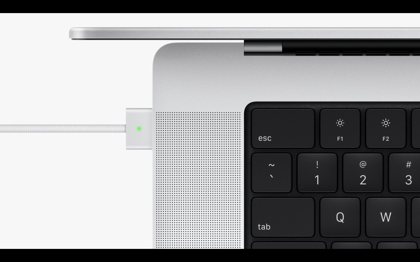 此外,以 MagSafe 3 之姿回歸 MacBook Pro 的 MagSafe 不僅讓使用者在插電使用電腦時不需擔心絆到電線而傷及電腦,也讓 MacBook Pro 首次具備了快速充電能力,在搭配 96W USB-C 電源轉接器的情況下,只要 30 分鐘就能充滿 50% 電量。與前代 MacBook Pro 相比,在充滿一次電後,14 吋機型影片播放時間加長 7 小時,來到了 17 小時之多,而 16 吋機型甚至多出 10 小時,擁有 21 小時續航能力。