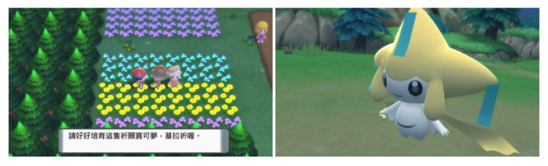 在花苑鎮左側的花田裡向紳士搭話,就能讓幻之寶可夢「基拉祈」成為夥伴。