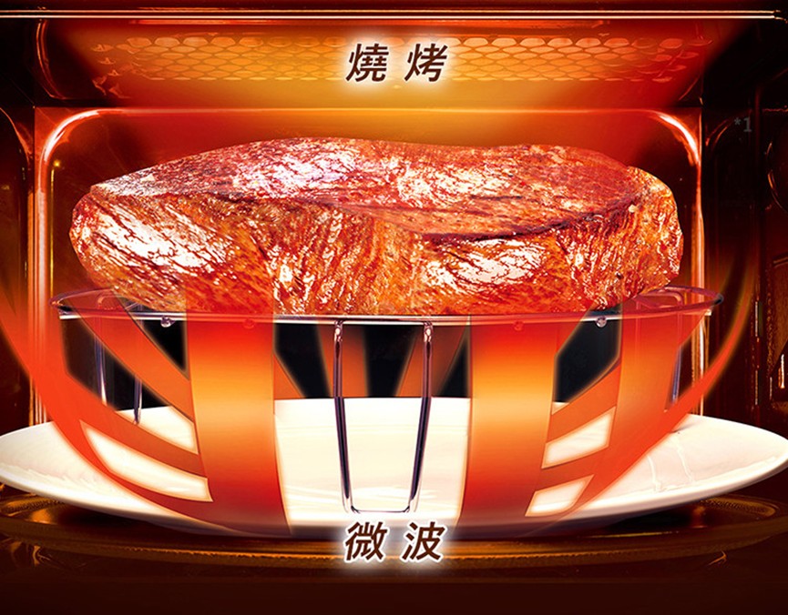 ● 主要功能:除了原本微波爐功能,上方還有加熱管可做「燒烤功能」