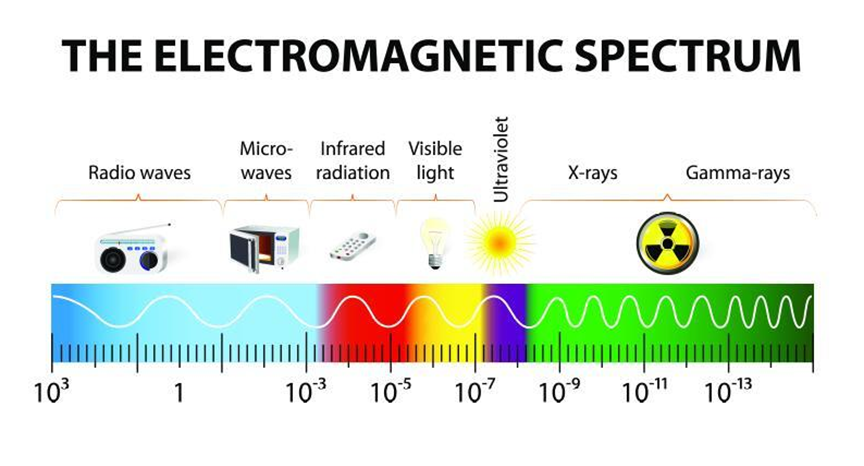 從下圖的電磁波譜可以看到,X光屬於短光波,穿透力強,所以可以用來照出人體骨骼或器官,但相對的就有微量的致癌風險,所以照射頻率是建議每半年一次。