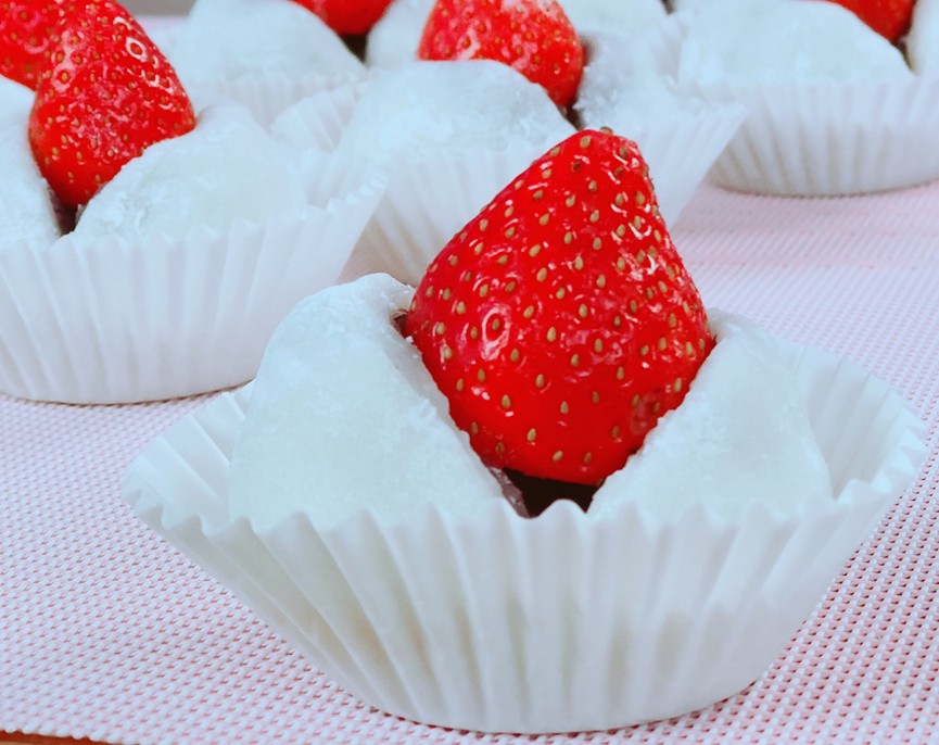 許多人草莓必吃的「草莓大福」其實就是包著豆沙餡的麻糬加上草莓做成,過去常見是將完整的草莓包在豆沙餡中,現在還有為了可以直接看到草莓而將大福切開放上草莓的造型,看起來的確讓人更有食慾,眼睛跟嘴都感受到草莓的魅力了呢~