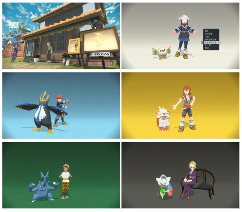 在「照相館」可以和寶可夢一起拍照。只要改變背景或拍攝方式,嘗試各種姿勢,露出喜歡的表情等,即使是和同一隻寶可夢合照,也能拍出氣氛截然不同的照片。拍一張值得珍藏的紀念照片,留下與寶可夢的回憶吧。