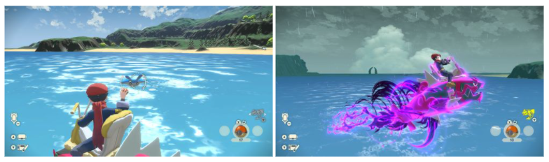 騎上幽尾玄魚就能在水上自由前進。這麼一來,對於棲息在平時難以接近的河川、海洋等地的寶可夢也能投擲精靈球去捕捉,或發起寶可夢對戰。可說牠是協助主角完成圖鑑的強力夥伴。此外,騎著幽尾玄魚以強力跳躍輕鬆飛過水面上的障礙物時,更是暢快得不得了呢!