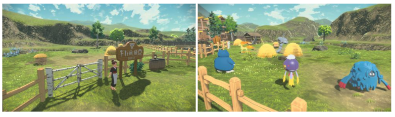 在「放牧場」可以寄放自己的寶可夢。捕捉許多的寶可夢是完成圖鑑所不可或缺的過程,但是,能與主角同行的寶可夢最多只有 6 隻。視任務內容來選擇要帶走的寶可夢後,再出發去調查吧。此外,調查途中也能在各地的基地營讓寄放在放牧場的寶可夢與同行的寶可夢互相替換。