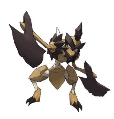 飛天螳螂在洗翠地區的特殊礦石作用下進化後的樣子。身體的一部分變得如岩石一般。岩石的部分經常會在激烈的戰鬥中缺損,因此越是身經百戰的劈斧螳螂,岩石部分的缺損就會越大。但缺損處也會相對地變尖銳,變得更加鋒利。據說洗翠地區的人們會將因損壞而掉落的石片作為石器使用。