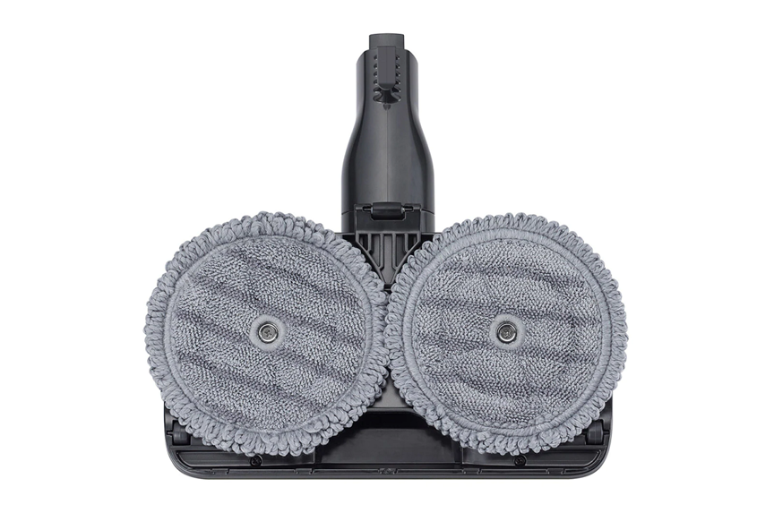 而且濕拖吸頭上的兩塊圓形抹布有許多細小絨毛,可以增加與地板的接觸面積、深入地板縫隙,吸附更多的髒污。如果遇到嚴重髒污,清完後只要取下兩塊小小的抹布清洗,非常輕鬆!不像傳統拖把得整支抬起,辛苦地在洗手檯或浴室用雙手搓揉拖把頭,更別提擰乾時更是吃力!