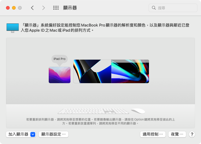 用了一段時間後如果想要調整 Mac 與 iPad 間的相對位置,也只要跟調整 Mac 的螢幕排列一樣,在「顯示器」設定中自由拖拉即可!