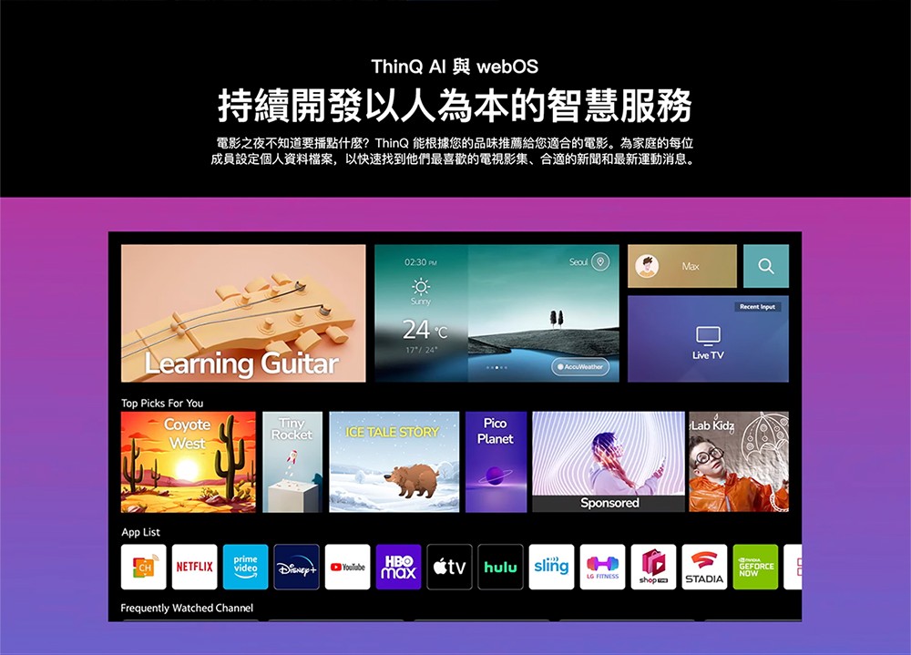 應用程式數量較少,但擁有LG商城並支援Apple TV APP與Apple TV+ |