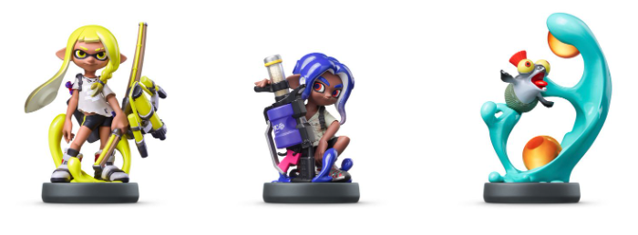 影片中亦公開了《斯普拉遁 3》的 amiibo 即將發售的資訊。在遊戲中,amiibo 將作為玩家的「支持者」,除了能記錄玩家的武器和和配搭,獲得特別的裝備,還可以一起拍照。本系列 amiibo 預定於冬季發售。