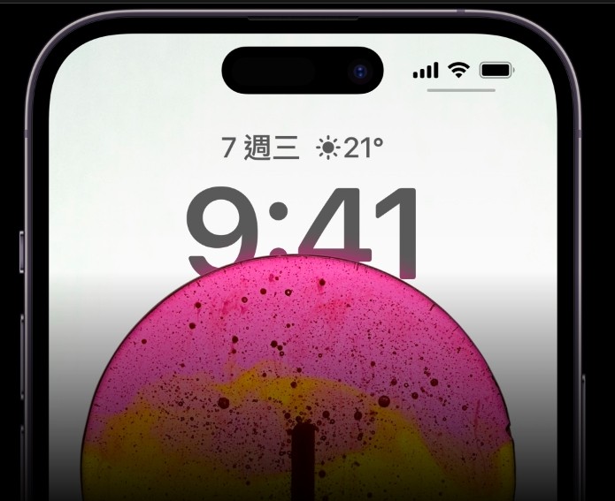 蘋果從iPhone X推出後,瀏海螢幕已經存在了6年,此次iPhone 14 Pro系列在外觀上首次有突破。瀏海螢幕進化成「動態島(Dynamic Island)」顯示設計,成功將軟硬體界線打破,且能即時調整變化以顯示重要的提示、通知和活動,也讓前置原深感測相機減少在顯示區域上佔用的空間。「動態島」在不干擾內容的情況下,會一直是啟用狀態。長按一下動態島,能輕鬆地使用各項控制功能。像音樂播放、地圖、計時器等持續進行的背景活動,保持隨時可視、可互動的狀態。