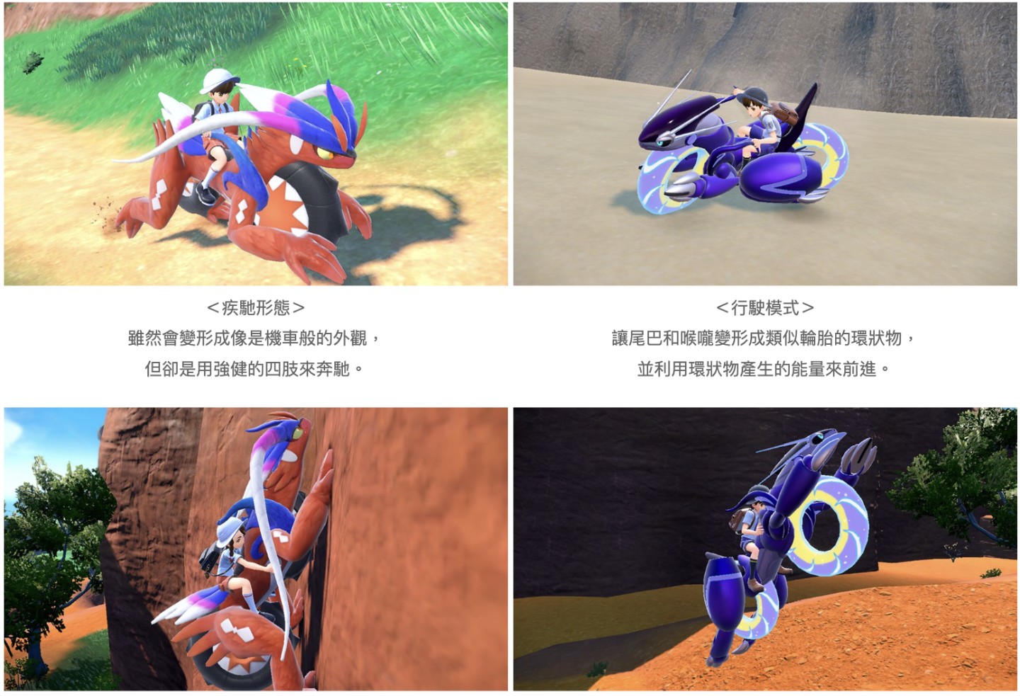 自己徒步走遍遼闊的帕底亞地區是一件費力的事。透過駕馭傳說的寶可夢的疾馳形態/行駛模式,即可用全速在這片廣大的帕底亞地區縱橫馳騁。