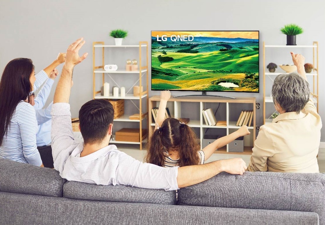 不喜歡多人擠在一張沙發上,就為了卡位最佳看電視的角度?如果家中人口眾多或空間夠大,建議選擇更大、75吋以上的奈米或QNED電視,能讓更多親友家人一同觀看。